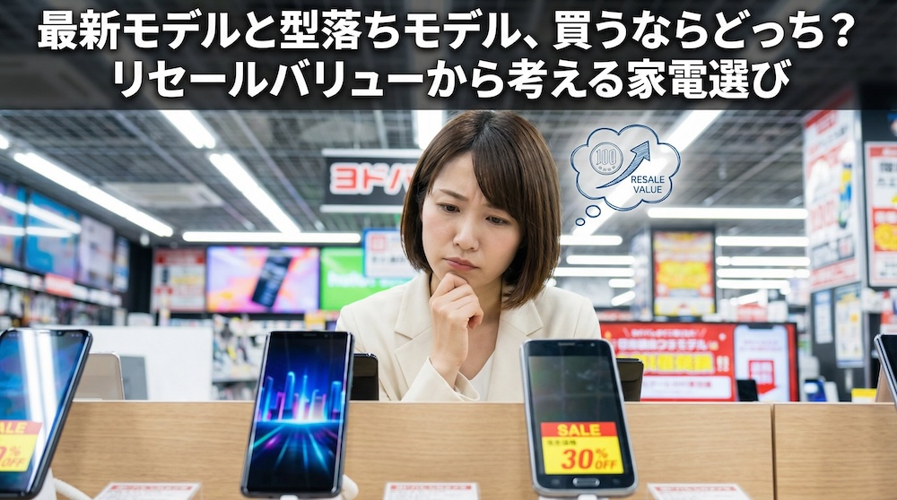 こんにちは、みのりです。郊外の戸建てで夫と5歳の娘と暮らしながら、暮らしを整えるヒントを書いています。今日のテーマは、家電選びでいちばん悩ましい「最新か、型落ちか」問題。しかも普通の比較ではなく、「数年後に売ったときいくらで戻ってくるか」というリセールバリューの視点から考えてみたいと思います。