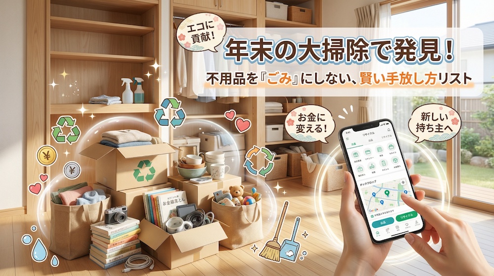 年末の大掃除で見つかった不用品。それは、決して「ごみ」ではありません。あなたの手放し方一つで、誰かの役に立ったり、家計を助けるお小遣いになったり、新しい価値に生まれ変わったりする可能性を秘めています。